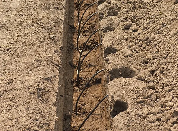 Drip lines are buried below the soil surface, delivering water directly to the root zone and minimizing evaporation.